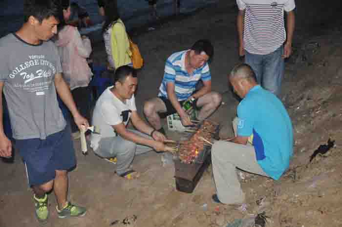 燒烤開(kāi)始了                                 “大廚”為我們服務(wù)